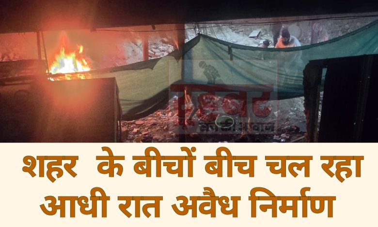 शहर के बीचों बीच आधी रात चल रहा अवैध निर्माण
