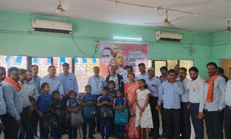 पैनगंगा खुली खदान में डॉ. बाबासाहेब आंबेडकर जयंती पर विद्यार्थियों को साहित्य वितरण