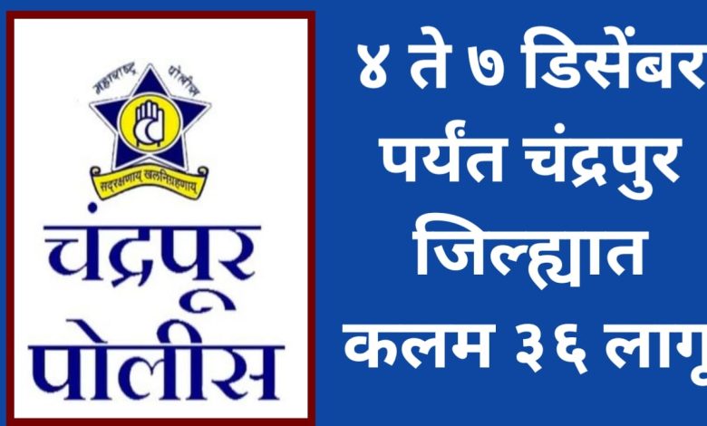 4 ते 7 डिसेंबरपर्यंत चंद्रपुर जिल्ह्यात कलम 36 लागू